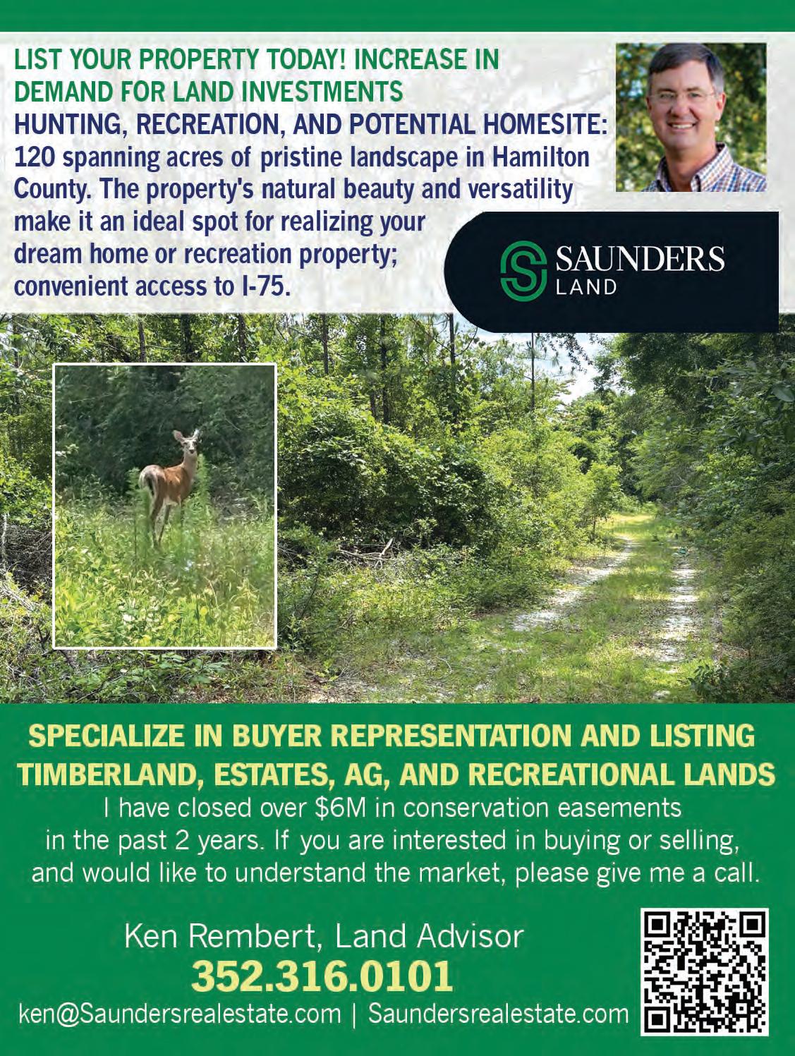 New advertiser that I failed to spotlight last month is Ken Rembert, Land Advisor. See Ken on page 7. Again, I want to remind you to keep your vaccines current. Covid is still here. The flu will never go away. It just changes every year. Stay smart, stay well and stay alive!