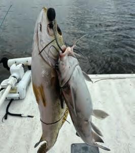 Black drums, aka “Big Uglies,” are a super fun sh to catch. It doesn’t matter if they are 18 inches weighing two pounds or 5 footers weighing 90 pounds. ey put up one heck of a dragpulling ght once they gure out that they’re hooked.