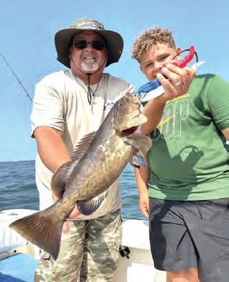 Since the endangered, gag grouper and American red snapper are o!-limits this month, it would be a good time to go deeper and/or change up your tactics to target di!erent species. For example, go ahead and catch your three scamp/red grouper combo, then switch over to smaller baits and smaller circle hooks on chicken rigs to target beeliners, trigger sh grunts and seabass.