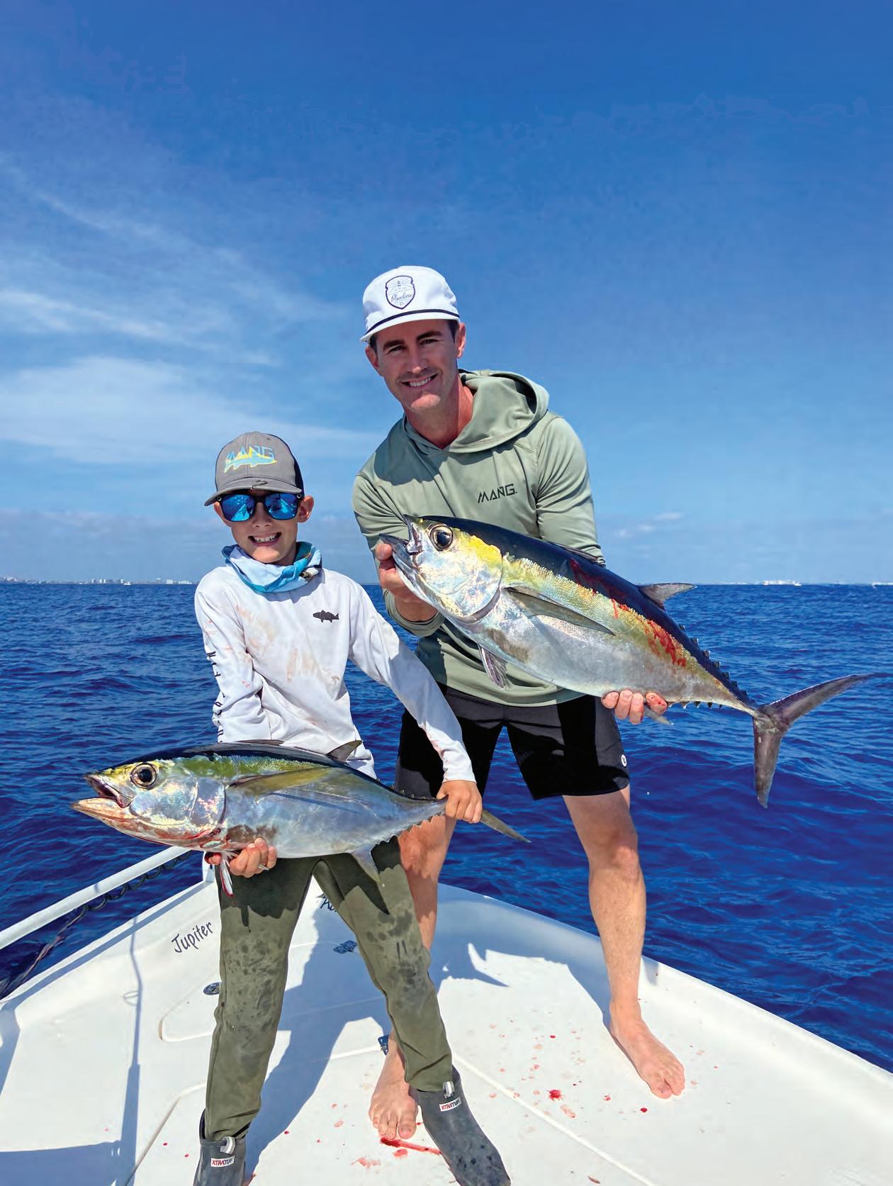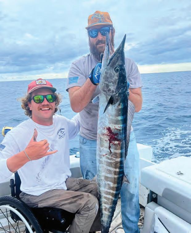 Don’t be surprised if you catch these sh in extremely shallow water this month. !e 66- to 68-degree temperature break can be magical this month for the light line. No telling what you’ll catch. Everything can be there, from kings to wahoo and everything in between.