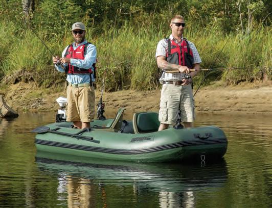 The Sea Eagle® Stealth Stalker™ 10 is now available with a lightweight, super portable, high pressure drop stitch oor. With this new in atable oor, the total weight of the boat is 13 pounds less than the traditional wooden oorboard. The oor rolls up with the boat making transporting and storing a breeze. The seats attach with 4 double d-ring straps for quick & easy set up. Use the STS10 with 1 or 2 anglers in bays, lakes, rivers, salt marshes - wherever the sh are.
