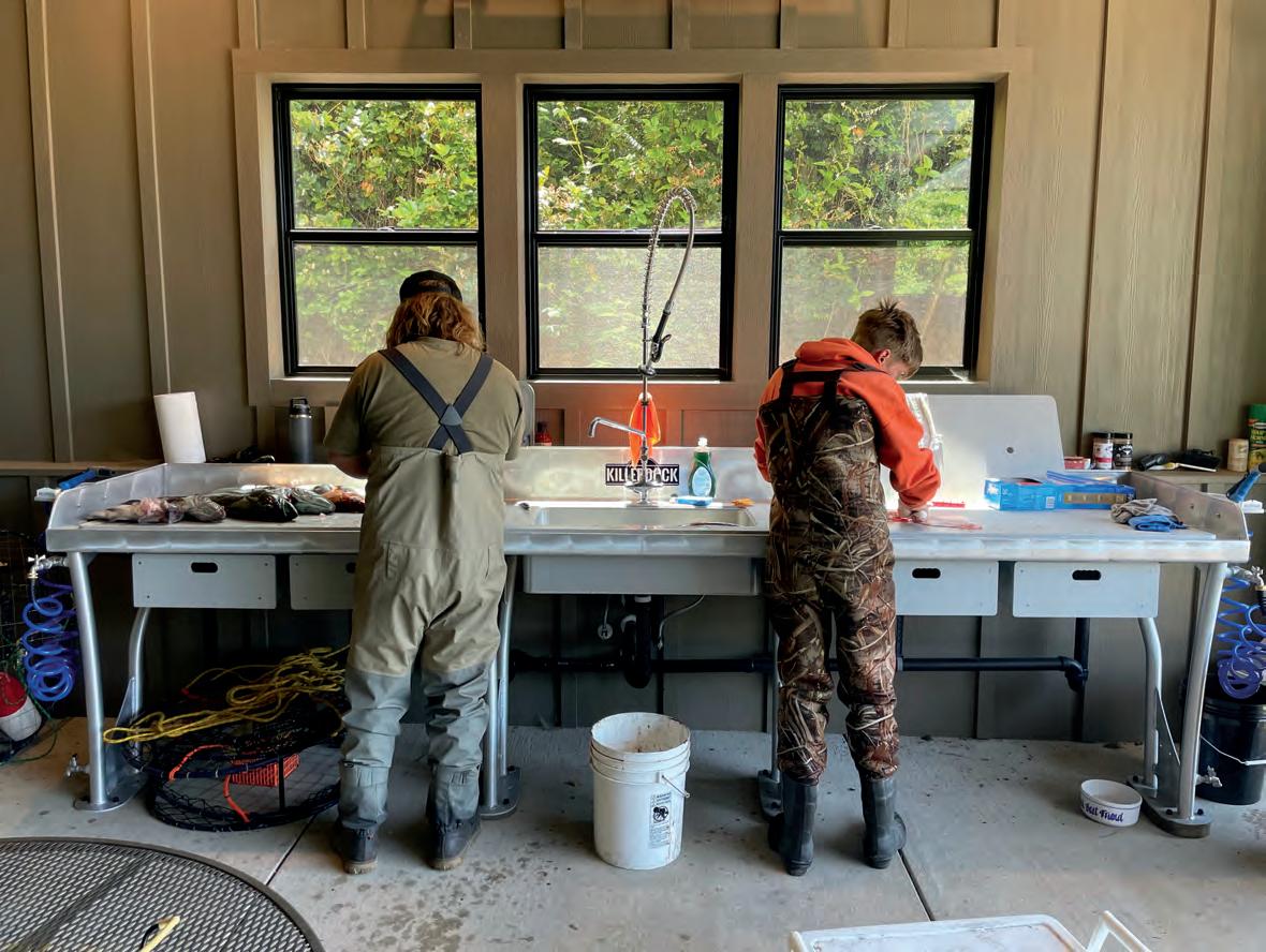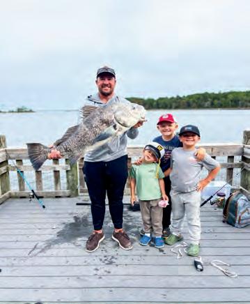 Farther south, Wilmington provides another winter opportunity as striped bass stack up in the Cape Fear River. ese sh hold near structure, dropo!s, and creek mouths, and can be caught on arti cials—or even on $ies. is resident population is separate from the highly migratory sh wintering o! the Outer Banks. Cape Fear stripers are strictly catch-and-release and must be returned to the water immediately, so keep an eye out for tagged sh.