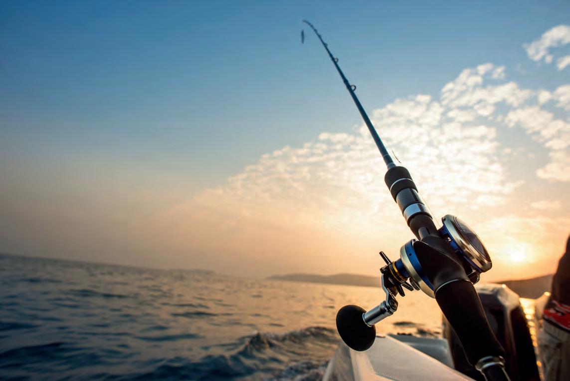 e key is to follow the birds, which o en reveal bass blowing up on menhaden, glass minnows, or eels. At times the action pushes close enough to shore that surfcasters can hook stripers right from the beaches of the Outer Banks. More o en, however, the best approach is hiring a local captain armed with recent intel and a fast boat.