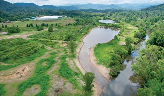 Natural Resources Conservation Service. Funding for the Pleasant Grove project came from the NC Land and Water Fund, NC Department of Public Safety, and National Fish and Wildlife Foundation. Conserving Carolina led both projects that were designed by Greg Jennings with Jennings Environmental. Volunteers from Trout Unlimited, the muskie club, and other conservation groups helped plant native vegetation following slough construction.