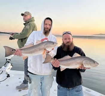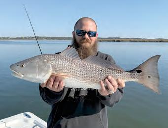 Farther south, Wilmington provides another winter opportunity as striped bass stack up in the Cape Fear River. ese sh hold near structure, dropo!s, and creek mouths, and can be caught on arti cials—or even on $ies. is resident population is separate from the highly migratory sh wintering o! the Outer Banks. Cape Fear stripers are strictly catch-and-release and must be returned to the water immediately, so keep an eye out for tagged sh.