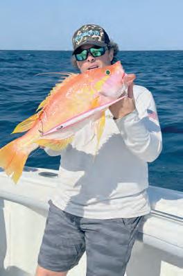 This is the time of year to nd the wall of warmer water and get the wahoo bite going. All of the water nearshore is cold and where the 68- plusdegree water meets that cold water can be an excellent spot for targeting wahoo. is is a great time of year to target wahoo during the rst hour or two of your trip using high speed trolling. You can cover a lot of ground high speed trolling, which speci cally targets wahoo. Once the sun has been up for a few hours your chances at a wahoo bite diminish unless it’s an overcast or rainy day. Wahoo regulate the amount of sun they take in by going deeper as the sun rises, so midmorning is a good time to change tactics.