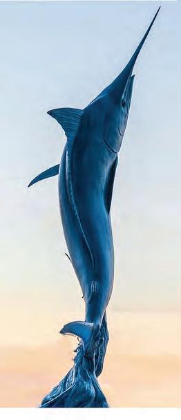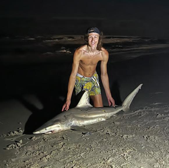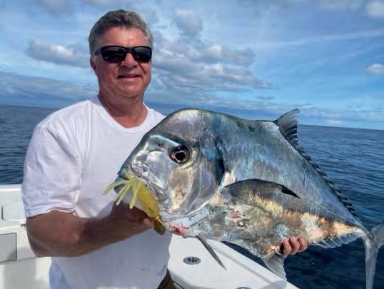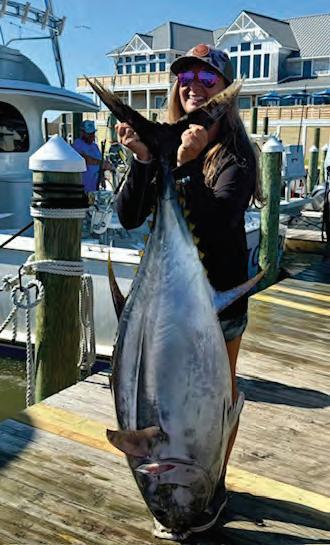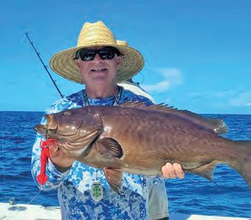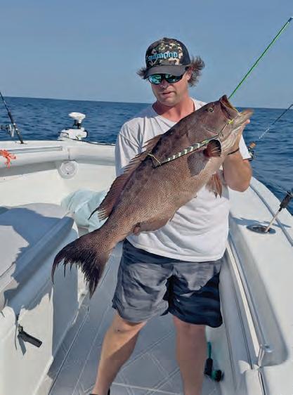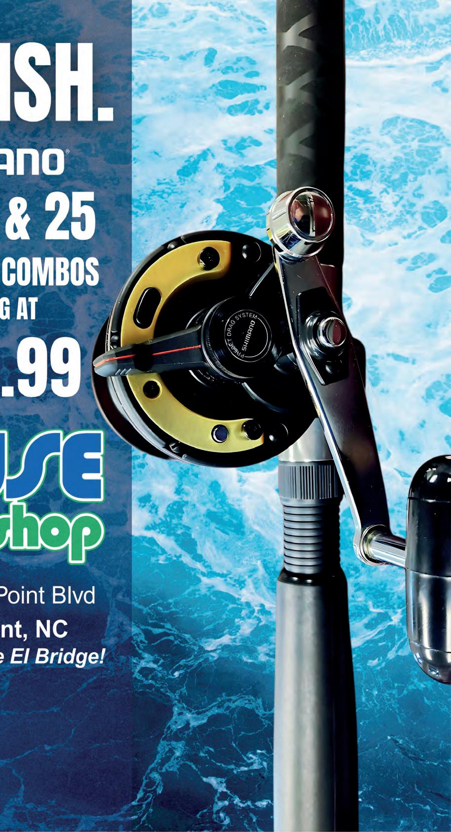 July and August will be the hottest months of the year. !e wahoo and yellow nn will be everywhere and nowhere they should be. For example, you could go up and down the edge of the break and not nd a wahoo or a yellow n anywhere, but the guy slow trolling a menhaden for king mackerel 10 miles o# the beach catches a 100-pound wahoo or the guy 30 miles o# the beach light lining a pin sh while bottom shing catches a 50-pound yellow n. None of it makes any sense this time of the year, except one thing... nd the bait, nd the sh. !e same thing applies to bottom shing. !is is the time of year to search for big stacks of bee liners, cigar minnows, and sardines. Keep an eye on the recorder when you’re running to wherever you’re going, and if you see a big stack of bait on the surface, take a minute to check it out. If that stack of bait happens to be near pretty bottom, there’s a good chance it’s a good place to sh. !is is the time of year when it is especially productive to jig live cigars and sardines and put them back out.