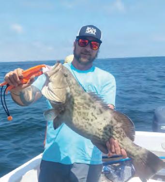 July and August will be the hottest months of the year. !e wahoo and yellow nn will be everywhere and nowhere they should be. For example, you could go up and down the edge of the break and not nd a wahoo or a yellow n anywhere, but the guy slow trolling a menhaden for king mackerel 10 miles o# the beach catches a 100-pound wahoo or the guy 30 miles o# the beach light lining a pin sh while bottom shing catches a 50-pound yellow n. None of it makes any sense this time of the year, except one thing... nd the bait, nd the sh. !e same thing applies to bottom shing. !is is the time of year to search for big stacks of bee liners, cigar minnows, and sardines. Keep an eye on the recorder when you’re running to wherever you’re going, and if you see a big stack of bait on the surface, take a minute to check it out. If that stack of bait happens to be near pretty bottom, there’s a good chance it’s a good place to sh. !is is the time of year when it is especially productive to jig live cigars and sardines and put them back out.