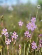 Each of the 15 coastal dune lakes in Walton County varies in size, shape, salinity, and water chemistry. The habitats that surround these lakes transition from beach and dune scrub to emergent vegetation, wet prairies, seepage slopes, cypress domes, and longleaf pine uplands, all of which are hydrologically connected. The wet prairies and seepage slopes support vast swaths of carnivorous plants and orchids, such as whitetop, yellow, pink, and parrot pitcher plants (Sarracenia spp.); yellow and Chapman’s butterworts (Pinguicula spp.); Tracy’s and spoonleaf sundews (Drosera spp.); and pogonia, snakemouth, grass pink, and white-fringed orchids. These habitats, and the plants within them, have historically depended on fire to maintain low-nutrient, flooded soils and an open canopy.