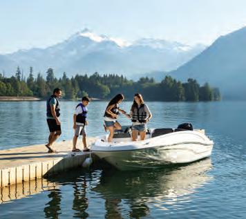 converters, the eLite can be fully charged in around four hours. For added capability and convenience, the engine includes a USB-C output that allows users to charge and power other electrical devices. At just under three-feet in length and weighing 14.7-pounds including the built-in battery, the eLite stores easily and the one-click quick-release bracket allows for installation and removal in a matter of seconds. For exceptional portability, the tiller handle converts to a perfectly balanced carry handle. With multiple trim and tilt angles, adjustable steering resistance and sha length, and a shallow-water mode, the eLite is completely customizable. Its Smart Battery Monitoring System e%ciently optimizes performance, carefully regulating battery level, temperature, and remaining state-of-charge all displayed on an ultra-simple interface, leading to extended range, a more energy-e%cient operation and longer battery life. Built to last, it is IP67 waterproof, and is constructed of aviationgrade aluminum alloy for lighter weight and greater durability. In addition, the anti-ground auto kick-up feature protects the motor from accidental damage. Available for under $1,000, it is also the most a#ordable electric outboard in its class.