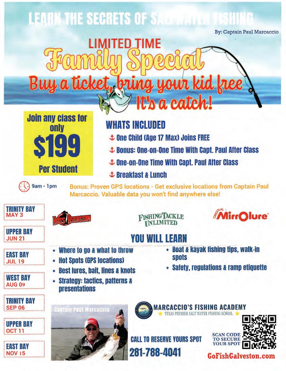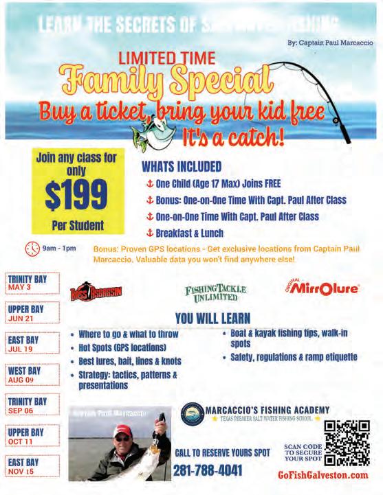 T.P. & W. & USCG License Marcaccio Fishing Academy captpaul@gofishgalveston.com www.gofishgalveston.com