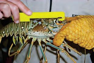 !e water depths also vary anywhere from 3 feet to much deeper, from 20 feet and beyond. To catch them, approach slowly from behind, use your tickle stick to gently coax the lobster forward, but never grab from behind as they’ll retreat deeper. When the lobster begins to walk, quickly position your net to block its escape. It’s important to note that spiny lobsters swim backwards when threatened, so your net should be placed just behind them, anticipating their retreat and staying one step ahead of where they’re going. Once in the net, grab the end of the net lining so the lobster doesnt escape and measure it in the water using your gauge. Only lobsters with a carapace of at least three inches can be kept.