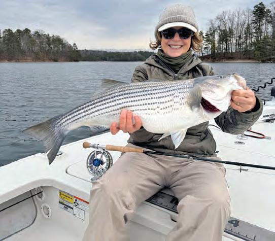 Pamela Moss was shing on Lake Lanier in Georgia on February 10, 2025, when she landed this 9-pound, 5-ounce landlocked striped bass. With this sh, Pam has set the IGFA Women’s 4-kg (8 lb.) Tippet Class World Record for the species. She was shing with guide Dillon Lancaster when she landed this record sh. She released the sh safely a$er recording the weight on her certi ed scale.