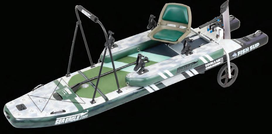 The versatility of the FishSUP™1210 is unmatched! Use it bare bones with just the board, a paddle & your !shing gear or deck it out with swivel seat, side pontoons, casting bar, motor and more! Incredibly stable, extra wide, swallow-tail !shing SUP holds up to 500 lbs! The FS1210 takes electric and gas motors up to 3 hp. There’s even an option for a bow trolling motor.