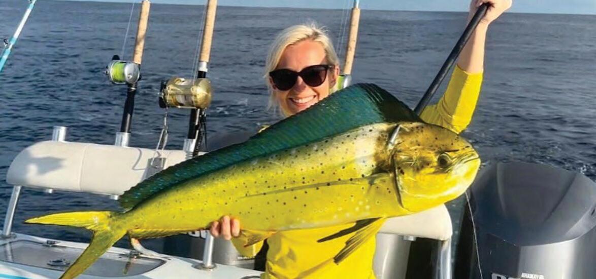 Mahi season has begun to be more consistent, making the trips o!shore more exciting and worthwhile. When making the long drive to the humps for black n tuna, or the sword sh ledges, it’s always a plus to know that you have opportunities to catch mahi on the way there and back. Staying alert for weedlines, diving birds and oating debris makes the trip seem like less of a chore, and keeps that sherman’s optimism alive for more of the venture, knowing you’re still on the hunt nearly the whole way back to the dock.