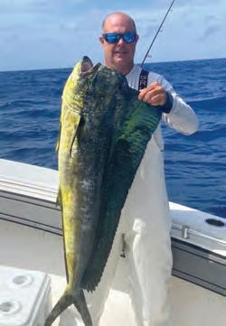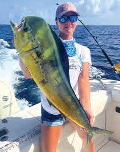Mahi season has begun to be more consistent, making the trips o!shore more exciting and worthwhile. When making the long drive to the humps for black n tuna, or the sword sh ledges, it’s always a plus to know that you have opportunities to catch mahi on the way there and back. Staying alert for weedlines, diving birds and oating debris makes the trip seem like less of a chore, and keeps that sherman’s optimism alive for more of the venture, knowing you’re still on the hunt nearly the whole way back to the dock.
