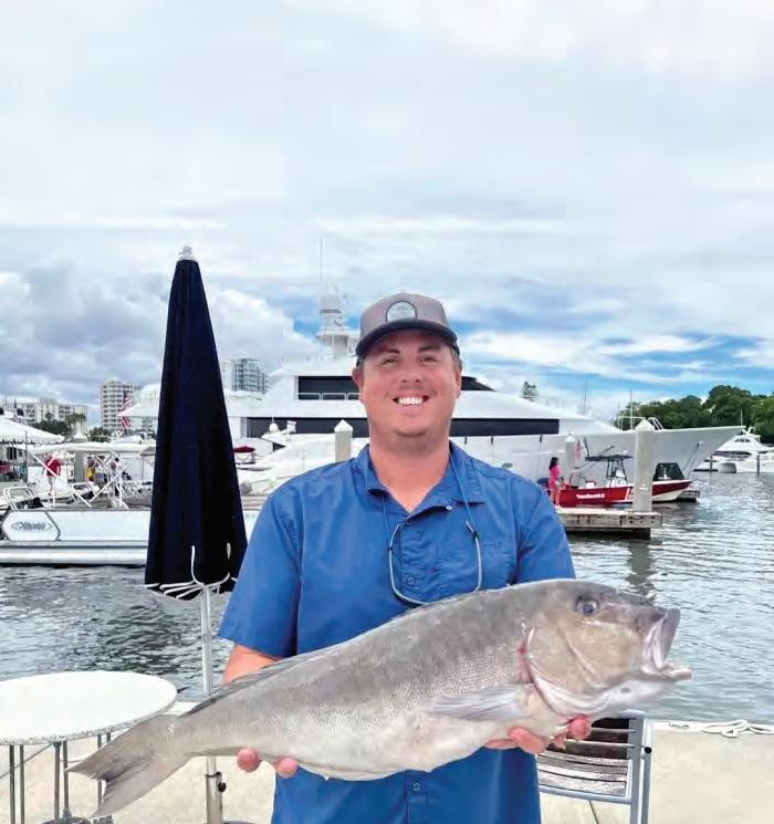 smaller chicken dolphins. If lures are your thing I prefer Yozuri Crystal Minnows and honestly color doesn’t matter. Pitch around the weed lines or patches and look deeper down for the bigger Mahi. As for Tuna with all the chumming going on, I like to send down a vertical jig on 60#-80# test at least 100’ below the boat. Working your jig through the water column is a good way to fire up any kind of fish that may be lurking around in the shadows. If you have a large diamond jig I’d put some heavy wire in front of it for a chance at a wahoo. Triple Tail are amazing fish on light tackle and I recommend 15#-20# fluorocarbon and #2 Owner hook. Live