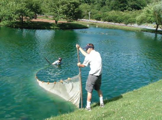 Using net sampling techniques, a qualified fisheries biologist can determine the balance of the fish population and make recommendations of a corrective stocking if needed. Many lakes and ponds become out of balance and need this sampling to find out what actions are needed to return a lake or pond to balance and back to a quality fishery.