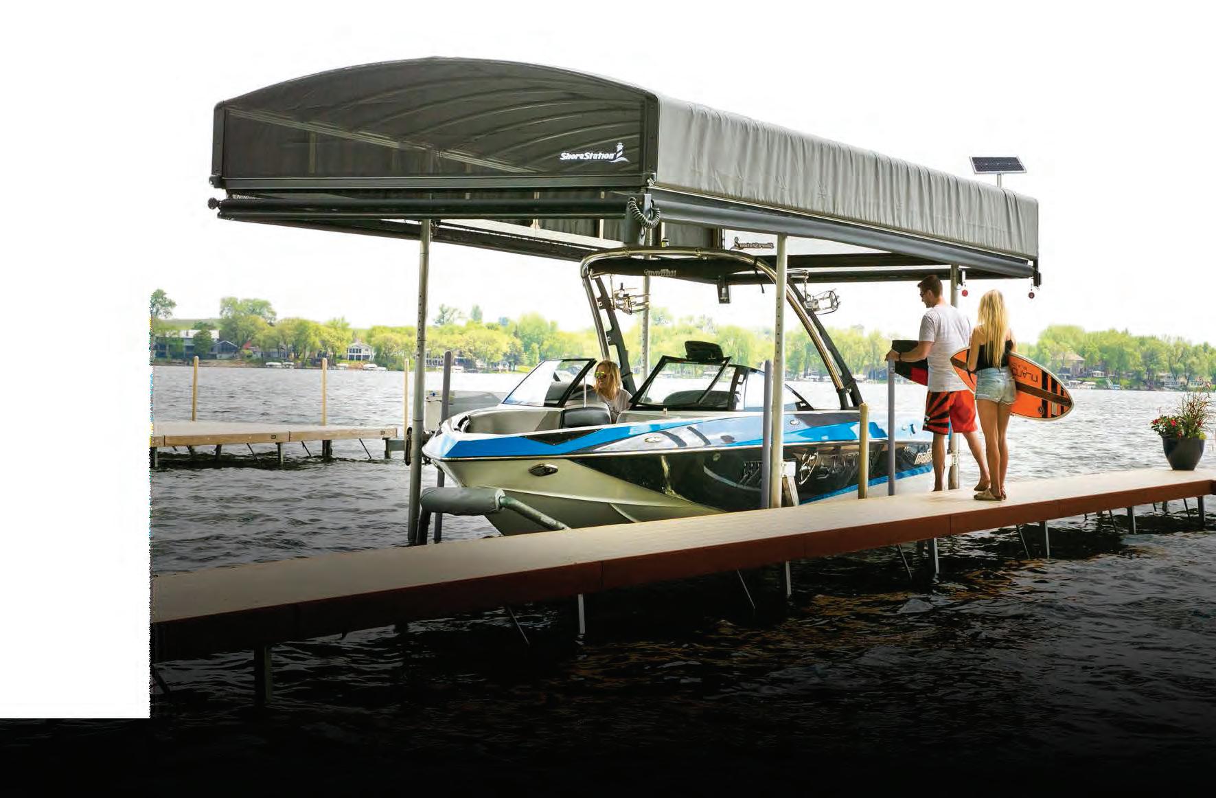 Made from the highest quality materials, our innovative hydraulic boat lift is one of the fastest and safest lifts on the market today. When you have a hydraulic lift, there’s no need to worry about wind and waves getting in your way. This lift will give you con dence to safely land and secure your boat in less-than-ideal conditions.