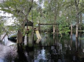 of the results of hurricanes passing through North Florida, is the flooding of creeks, streams, and rivers. The Suwannee River, for example, is directly affected by heavy rains that fall in the Okefenokee Swamp way up near the origin of the Suwannee in Georgia. Residents much further south all along the Suwannee pay close attention to the amount of rain the Okefenokee receives and act accordingly.