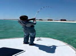 In around fve to six feet of water, grass growth stops, forming a natural erosional edge where fsh like trout, cobia, tarpon, and mackerel hunt. Tese edges act like a “superhighway” for predatory fsh. While smaller fsh are found on the fat, the big ones hang near the edge, diving into the deeper channel when necessary.