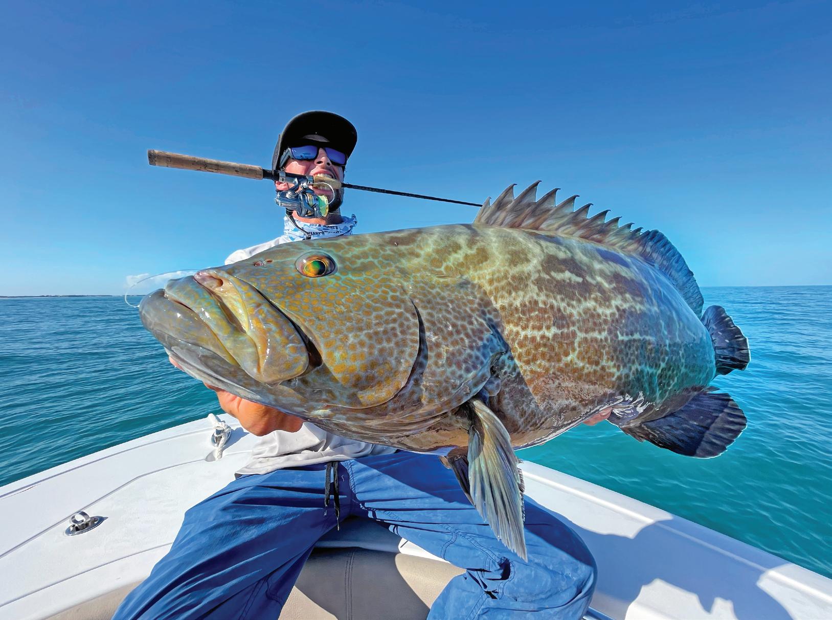 f course, October is when it all starts, but if you like to bottom fsh, then November is the month the turbo kicks in, leading to the crescendo of the year… December. I’ve always said the week of Christmas is the apex of the grouper fshing calendar, and I’ll stand by that statement now. Tis is when larger (male) gags move inshore to establish their territory on inshore ledges, wrecks, and live bottom, much like buck deer making scrapes and rubs to mark their territory. Tese males now wait for the smaller females to show up in numbers to spawn, and the bite traditionally goes of the charts.