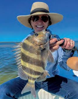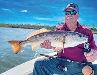 When water temperature stabilizes in the COLD range, all the migratory forage ees for warmer pastures. e bays are le with larger mullet as the primary food source for prized speckled trout. is is the time of year that I pull out my larger lures. is could be a longer length, a wider pro le, or both. is doesn’t have to be a 12-inch lure that is no fun to cast all day, but I do upsize from my typical 3- and 4-inch lures that I use most of the year. We have all seen a 25-inch trout with a 15-inch mullet in its belly, so they will eat something huge, but giant baits aren’t as fun to sh.