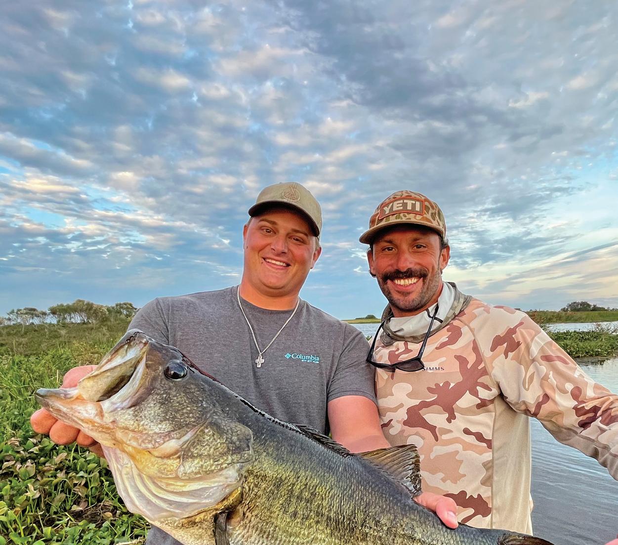 Headwaters Lake is a 10,000-acre manmade lake in Indian River County adjacent to the well-known Stick Marsh and Farm 13. Prior to ooding the land, the FWC and the St. Johns River Management District created habitat with numerous underwater structures, ooded timber, vegetation and 30-foot-deep pits. ere were already existing ponds and pits on the property that contained resident bass, and nearly a million Florida strain bass were stocked along with bluegill, redear sun sh and crappie. ere are thousands of acres of submerged vegetation, mostly hydrilla, along with acres of cattails, spatterdock pads and hyacinth mats that are super fun to sh.
