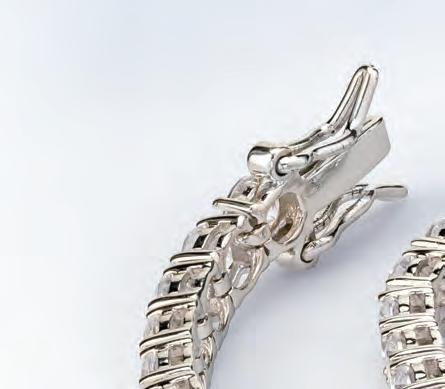 We’ve captured this timeless classic with over 10 total carats of DiamondAura®, our signature diamond alternative stone. Tis sparkling marvel rivals even the fnest diamonds (D Flawless) with its transparent color and clarity, and both are so hard they can cut glass. Don’t believe me? Te book “Jewelry and Gems – Te Buying Guide,” praised the technique used in our diamond alternative DiamondAura®: “Te best diamond simulation to date, and even some jewelers have mistaken these stones for mined diamonds,” it raved. For comparison, we found a similarly designed 10 carat tennis bracelet