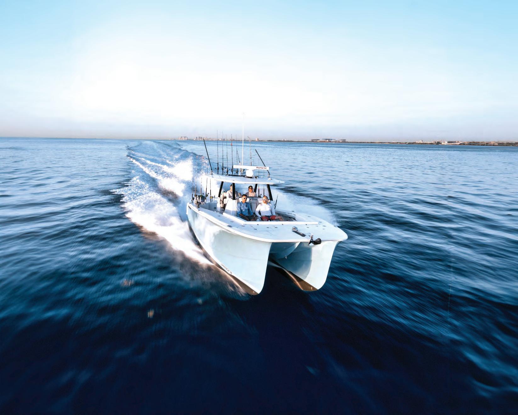 Yes, anchoring may feel like a step back for those spoiled by spot-lock motors, but it’s a reliable method for staying on productive marks without straining batteries. Once anchored, consider adding a kite to your !shing arsenal. Kites are particularly e ective for enticing leader-shy species like yellow!n tuna and wahoo. When properly deployed, they minimize visible leader material in the water, o en resulting in immediate strikes.