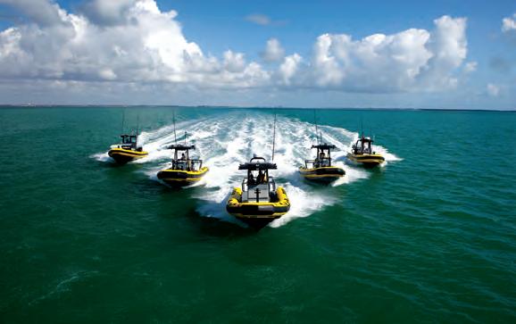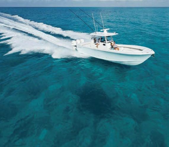 “Speci cally, the new models are 9 inches longer, with gunwales 2 inches higher at the helm and 4 inches higher at the bow than the previous 21-foot line,” said Jon Sutter, Yamaha Boats Product Planning Manager. “And the gunwales are thinner too, which adds to the roominess when passing by the center console.”