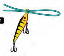 A“double tackle” is what I call rigging two lures on the same main line. In certain situations, this appearance of a school of eeing bait sh or shrimp is irresistible to predators, and I’ve got a clean and simple way to rig a double tackle.