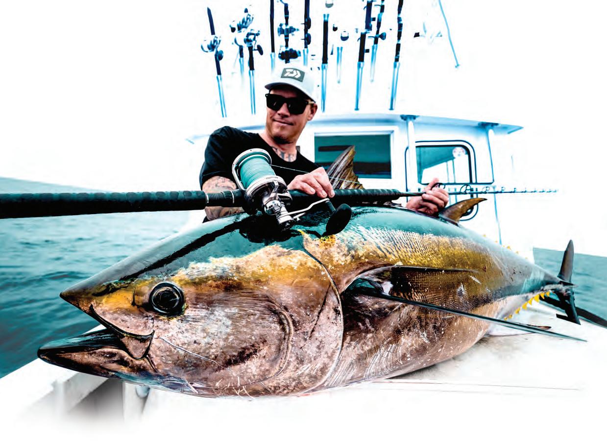 John McLean, of Big John Shark Fishing Adventures, runs shore-based charter trips for clients who want to catch the sh of lifetime. On this particular trip, his clients wanted to “go big, or go home,” so they used a huge yellow n tuna head for bait and enlisted the help of local charter captain, Capt. David Miller, who paddled a small kayak 900 yards o the beach in rough surf to deploy the bait.