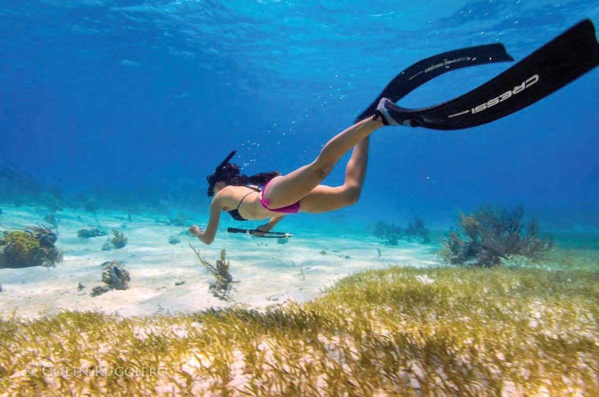 When fshing for grouper on the reef, keeping your rig from getting rockedup on the bottom is the biggest challenge. Do not overweight your rig, and keep an angler on or near the rod at all times. Grouper are notorious for grabbing a bait and taking it back into their homes immediately. When you lose a big grouper, especially with a mouthful of your tackle, they grunt a warning to the other fsh. Tis shuts down the grouper bite. It is best to keep the grouper rod in your hand when possible and be ready to crank them away from their hidey-holes. Tere isn’t much room or time for error on the initial bite.