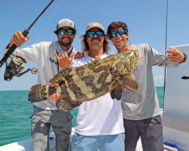 We were lucky to receive one of the tags to harvest a Goliath this year. Tere were specifc protocols to follow. Te FWC divided it into Category I and Category II, restricting the fshing areas. Additionally, there was a stipulation to use non-ofset, non-stainless steel hooks to improve survival chances. Tere was also a research element involved. We were issued a kit for taking samples and instructions on where to drop of the carcass afer our fsh was cleaned.