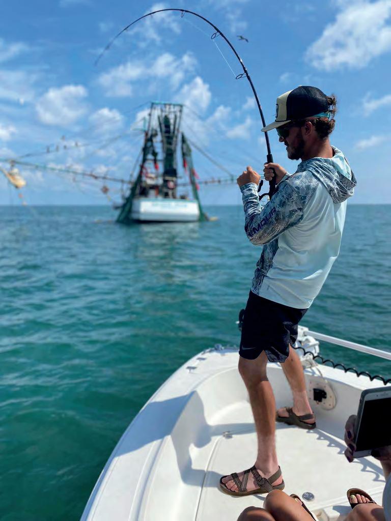 It could not be more true for the month of October, and the season for the shrimp, white shrimp to be specifc. Te (white) shrimp will start to “march” from the sounds towards the inlets and into the ocean. Tey will do this march against the current towards the ocean at night mainly. Tis is the very reason we fsh and catch shrimp at night. With the new LED lights, you can produce hundreds and even thousands of lumens with very low wattage/battery drain.