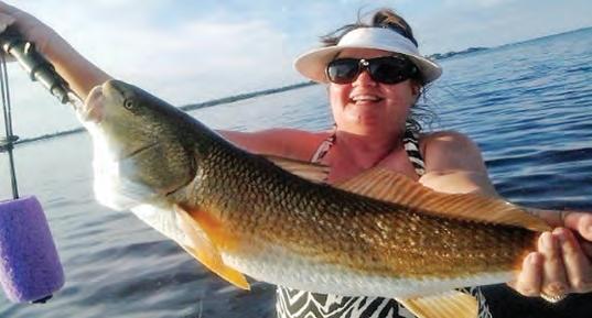 Darlene Shuman, President, Salt Strong Tampa Chapter posing with a 43 inch redfsh prior to quickly releasing it in Venice, LA.