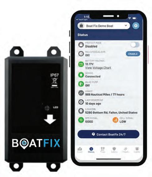 Users of the Boat Fix Pro app can communicate with the 24/7 Boat Fix team at the touch of a button, through voice, text, email, or two-way video chat to answer questions and diagnose issues on the water. Every call is answered in seconds, in person, by trained professionals ready and willing to help. Te industry-exclusive 24/7 Emergency Mechanical Helpline ensures boaters have immediate mechanical assistance over the phone if issues occur on the water. Te 24/7 Boat Fix Control Center also monitors unauthorized use and boat-thef prevention and can share your boat’s exact location with law enforcement.
