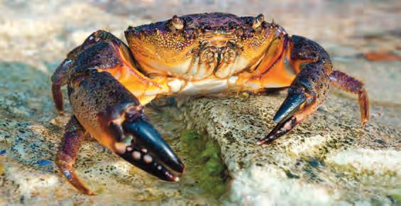 caution, as the crabs’ strong claws can deliver a painful pinch.