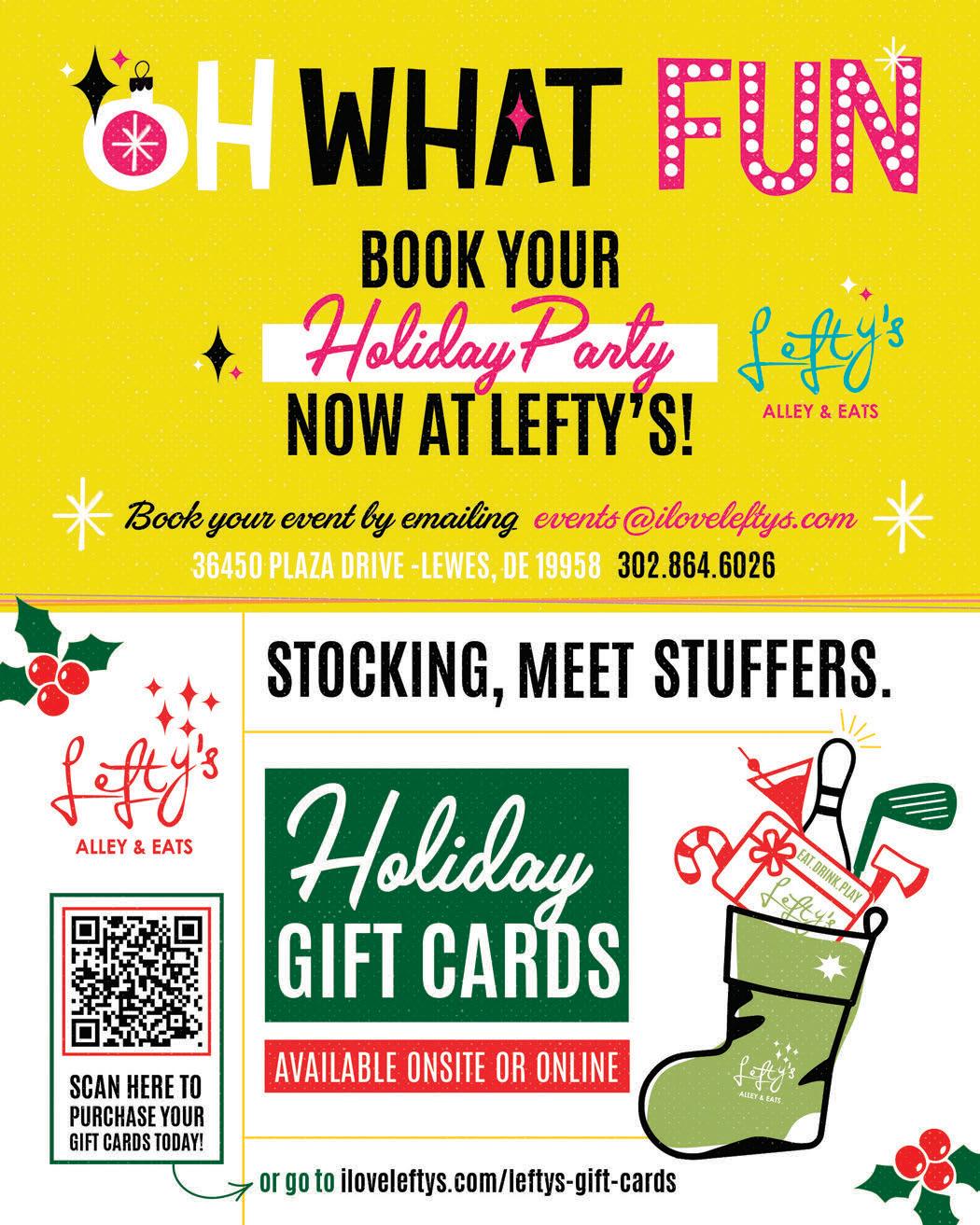 (3)Food!(It’stheholidays,sopardon myfoodfixation!)Oneofthebestthings aboutfoodgiftsistheyrarelysitaround takingupspaceforlong.(Andiftheydo, youknowwhatnottogetnextyear!) Whetherit’saboxofcrabcakesthat’llbecomedinneronJan.2,agianttubofpopcornfromyourfavoriteboardwalkshop tomunchduringaholidaygame,afancy candyappletosharewiththefamilyora boxofsaltwatertaffydeliveredtoafriend whonevergetstosmellseaair,foodisa lovelanguage,andyourfoodiegiftcan speakDelmarvafluently,nomatterwho, orwhere,therecipientmightbe.