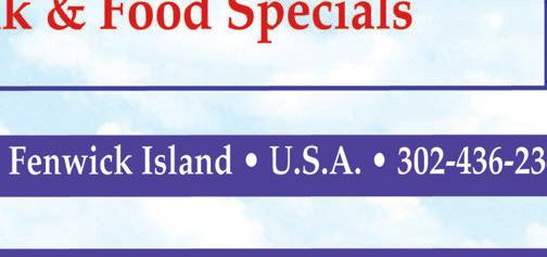 June16,2023 CoastalPoint 3 OpenDaily10-5•Sun11-4 302-537-1414 CoastalHwy.&DagsboroSt.,FenwickIsland SouthernExposureFenwickIsland.com SPECIAL BUY Spx dresses $60 - $ 39 ESCAPE LULU B CHARLIE B. TRIBAL LILLY WHITE RUBY RD. FRENCH DRESSING SKECHERS HABITAT ZAC & RACHEL SANTIKI PARSLEY & SAGE KAREN HART MULTIPLES DEMOCRACY Rep of styles BETHANYBLUES.COM • 302.537.1500 Happy Hour Every Day 11:30 - 6 PM Place Your Order Here Feeding a Group? Check Out Our Casual Catering Platters Open Every Day: Lunch & Dinner Opens at 11am • Happy Hour 1pm-6pm Daily at the Bar Only On the Bethany Beach Boardwalk • 302.537.6621 • MangosBethany.com Contact ~ Lauren@BethanyBlues.com for more info Bethany Beach –6 North Pennsylvania Ave., 1 Block from the Totem Pole Lewes –18385 Coastal Highway Rt. 1 North, just past Midway Open 7 Days: 11:30-Close for Lunch & Dinner (at the bar only) NOW HIRING Call 443.614.2362 OCEANFRONT DINING Fresh Fish • Jerk Chicken • Tacos • Kids’ Menu