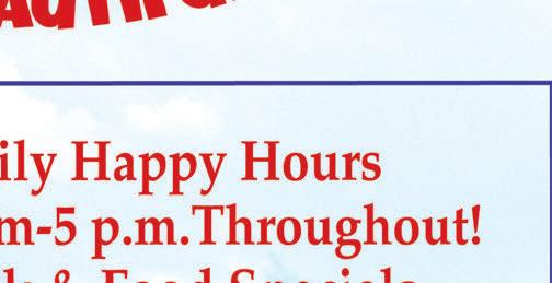 HOURS Open Every Day 9am-10pm BREAKFAST Monday-Thursday 9am-11am Fri, Sat & Sun 9am-Noon Order Online @ ccfbayside.com Daily Lunch & Dinner Specials - Check Our Facebook Page Every Day! Happy Hour - Mon.-Fri.: Drink Specials - Noon-5 PM Food Menu - 2-5 PM 37314 Lighthouse Road | Rt. 54, Selbyville, DE • 302-988-5000 Full Service Bar and Restaurant on the West Fenwick Waterfront World Famous Crabcakes and Bloody Marys Take-out, Dine-in, Outdoor Seating on the Beautiful Bay LIVE ENTERTAINMENT Rick ‘n Regina - Sunday, 8/13 - 2-5 PM Jack ‘n T Lutz - Wednesday, 8/16 - 5-8 PM Lost & Found - Friday, 8/18 - 6-9 PM SafeKidsCoalitioncollectingschoolsupplies SeeSELBYVILLEpage5