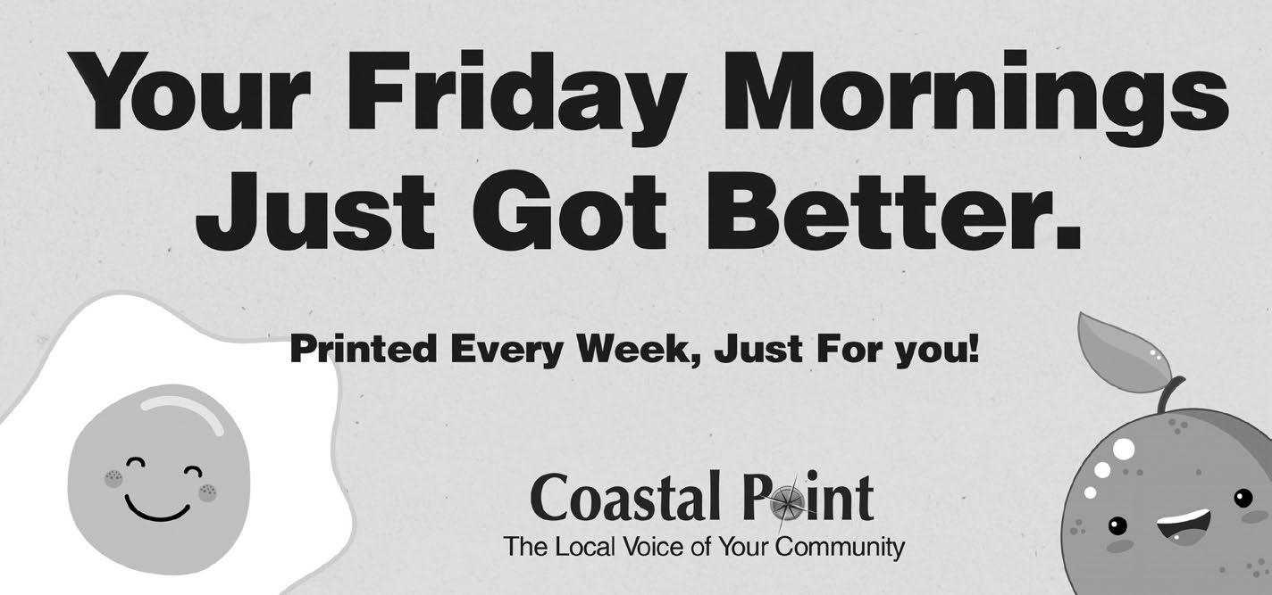 September8,2023 CoastalPoint 3 BETHANYBLUES.COM • 302.537.1500 Happy Hour Every Day 11:30 - 6 PM Place Your Order Here Football Is Back! Specials Start Sunday, Sept. 10 at Kickoff! Open Every Day: Lunch & Dinner Opens at 11am • Happy Hour 1pm-6pm Daily at the Bar Only On the Bethany Beach Boardwalk • 302.537.6621 • MangosBethany.com Bethany Beach –6 North Pennsylvania Ave., 1 Block from the Totem Pole Lewes –18385 Coastal Highway Rt. 1 North, just past Midway Open 7 Days: Mon-Thurs –4pm-Close Fri-Sat –11:30-Close for Lunch & Dinner • Sun –Open at 11 for Lunch, Football, & Dinner (at the bar only) Home of the Famous Mangorita! OCEANFRONT DINING Fresh Fish • Jerk Chicken • Tacos • Kids’ Menu Open Mon - Sat 10-5 • Sun 11-4 302-537-1414 Coastal Hwy. & Dagsboro St., Fenwick Island Summer Sale! Great Selection Early Fall Up to 65% Off ALL* Summer Clothing SouthernExposureFenwickIsland.com ESCAPE • JAMS • SANTIKI CHARLIE B. • TRIBAL • LILLY WHITE RUBY RD. • SKECHERS FRENCH DRESSING • HABITAT LULU B • ZAC & RACHEL TANGO MANGO • PARSLEY & SAGE KAREN HART • MULTIPLES • DEMOCRACY Many More *yr. rd. styles as marked