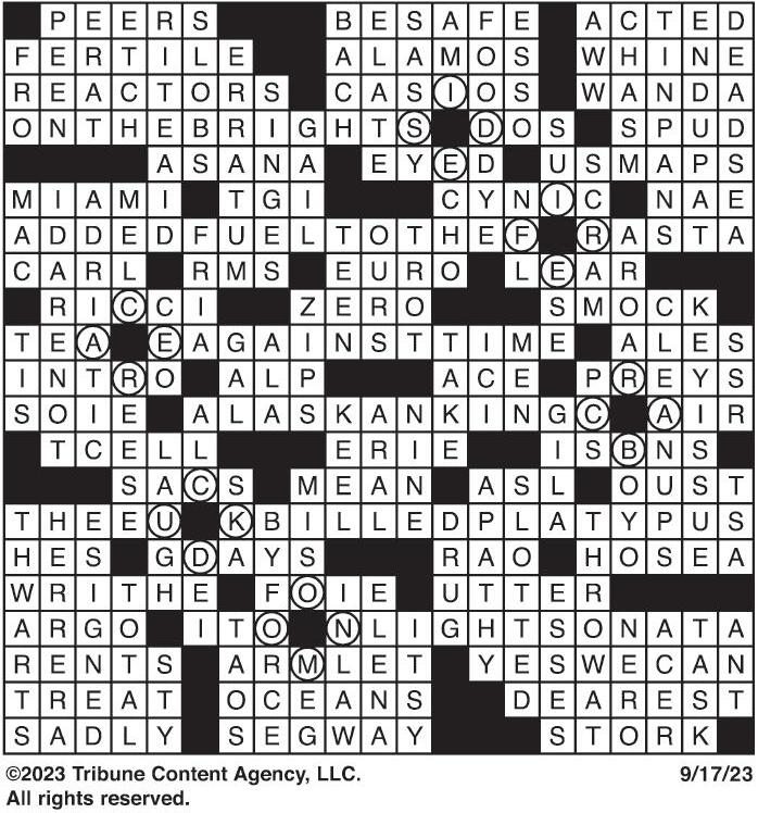 kris@kapd.com KAPD ebooks now available on www.kapd.com 9/10/23 © 2023 KAPD, LLC ANSWER (HOLD UP TO MIRROR) Jumbles: Answer: bed flag glad hazy Had a ball Print your answer here: THAT SCRAMBLED WORD GAME! ® By David L. Hoyt and Jeff Knurek The letters of these crazy words are all mixed up. To play the game, put them back into the right order so that they make real words you can find in your dictionary. Write the letters of each real word under each crazy word, but only one letter to a square. you can put them in order so that they make your funny answer. Getthefree JUSTJUMBLE @PlayJumble BDE LDGA AHYZ ©2023 Tribune Content Agency, LLC