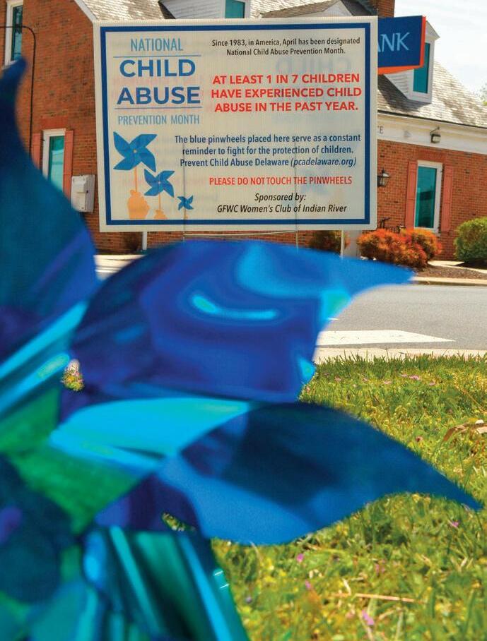That’swhyGossandtheGFWC Women’sClubofIndianRiverare catchingthepublic’sattentionthis weekwith100glossybluepinwheels placedinMillsboro.They’reraising awarenessforChildAbusePrevention Month.