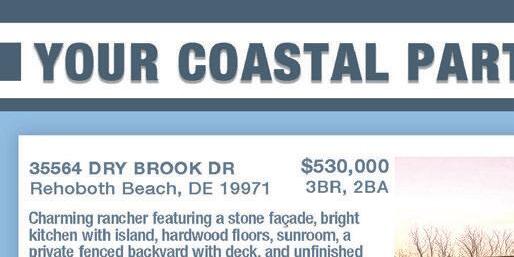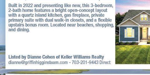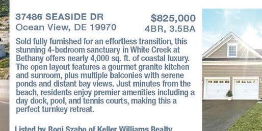 11446 W. SAND COVE RD, SELBYVILLE PRICE REDUCED in this furnished 4 bd 3.5 ba townhome with pond views and a short walk to a couple of the pools. In the award-winning Bayside community, close to the DE & MD beaches and lled with great amenities! Come see this one! $565,000 (DESU2097590) Call Danny Taglienti (c) 410-430-2721