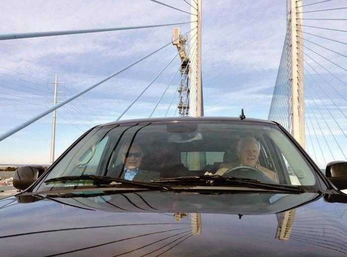 FormerStateSen.GeorgeH.Bunting,passengerseat,andcurrentStateSen.Gerald HockertakearideoverthenewIndianRiverInletBridgewhenitopenedin2012.