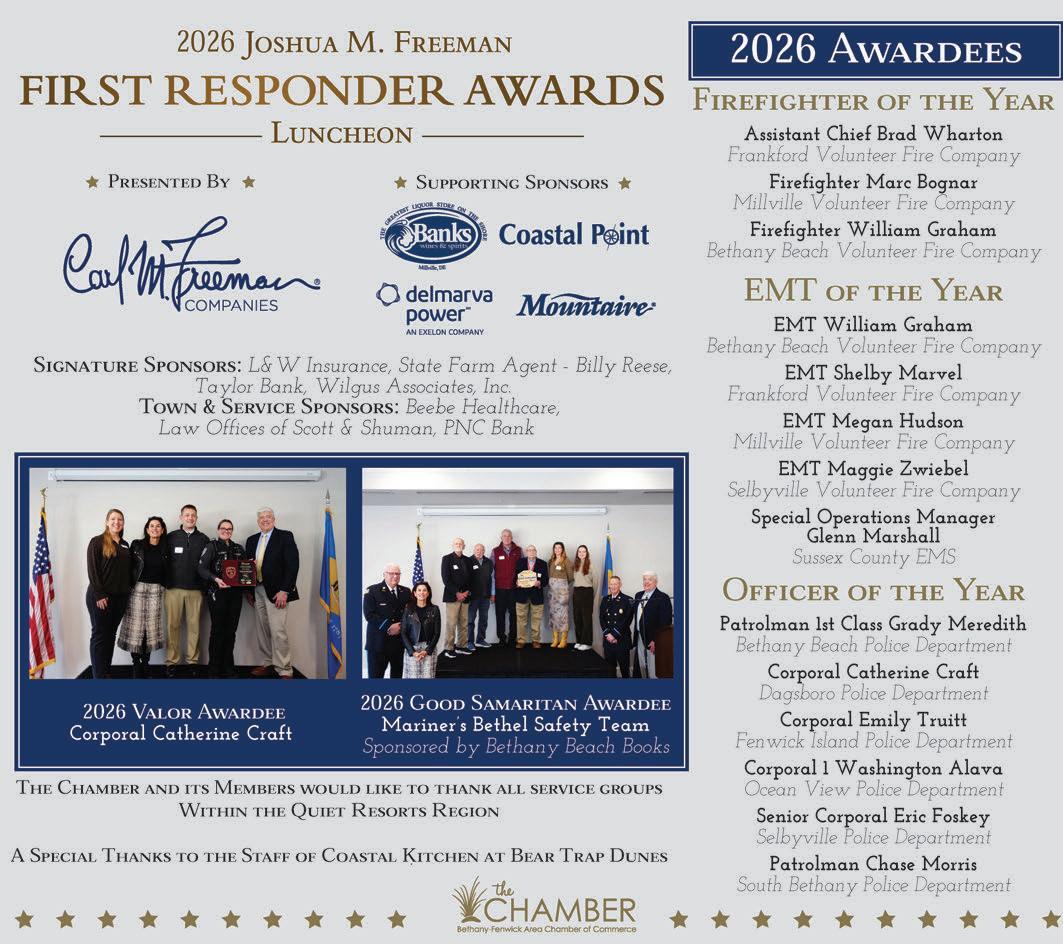 Thiseventishostedannuallybythe Bethany-FenwickAreaChamberof Commerce,andwasrenamedin2007in memor yofthelatedeveloperandphilanthropist,JoshuaM.Freeman.Each agencywithin“TheQuietResorts”regionisinvitedtoselectanindividual honoree.