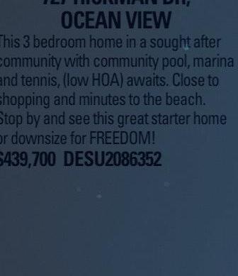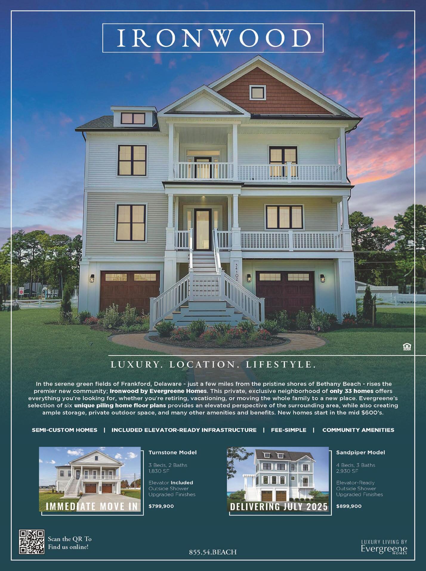 4 bedrooms, 2.5 baths plus powder room 2877 SF plus 1,700+ SF un nished basement Rare opportunity in Piney Island — a peaceful coastal community with mature trees and water views. Prime location near Ocean City and Delaware beaches, this custom cedarshake Cape Cod offers 2,800 sq. ft. of living space plus a full 1,722 sq. ft. un nished basement. Beautiful half-acre lot features a back deck, patio, and room to garden, play— or even add a pool. Schedule your appointment today!
