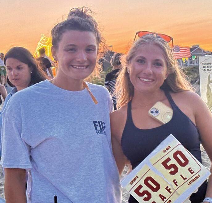Funforacause CoastalPoint•KerinMagill TheTownofFenwickIslandhosted around400guestsattheannualFenwickIslandBonfireonSaturday,July5. Theevent,whichservesasa fundraiserfortheFenwickIsland BeachPatrolaswellasafuncommunitygathering,raised$15,500(before expenses)fortheFIBP'sentriesinthe UnitedStatesLifesavingAssociation's NationalChampionships.Left,Fenwick IslandlifeguardsKennaPaquinand HannahMikolopwerebusyselling 50/50 ticketsasthesunsetoverthe bay.